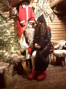 Vor unserem Ziel haben wir in Rovaniemi den Weihnachtsmann besucht, Treffpunkt war 15:00 Uhr (denkt dran +1 Stunde in Finnland plötzlich), wir waren schon um 12:30 nach 3,5 Stunden in Rovaniemi und konnten auch noch kostenlos Santa claus Village besuchen. Danach waren es noch 160 km, für die wir aber 3 Stunden wegen einem Schneesturm gebraucht haben…Fahrt also vorsichtig sehr glatt !